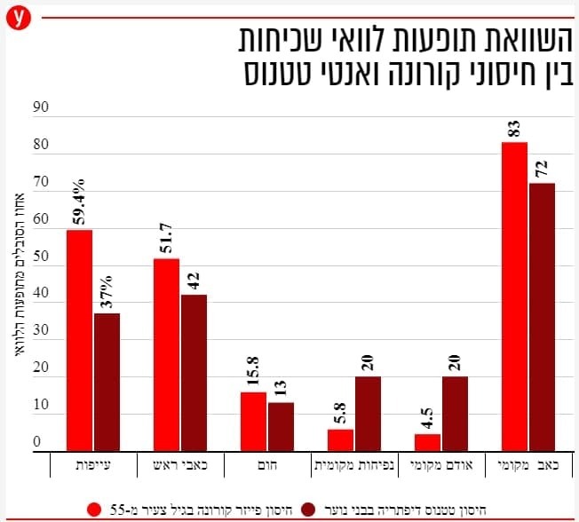 תופעות לוואי מערכתיות - יכולות. כדי לשכנע את הציבור שמדובר בתופעות לוואי רגילות לחיסונים - צירפה גם השוואה בין התגובות לחיסון לקורונה לאלו של החיסון הוותיק נגד טטנוס.