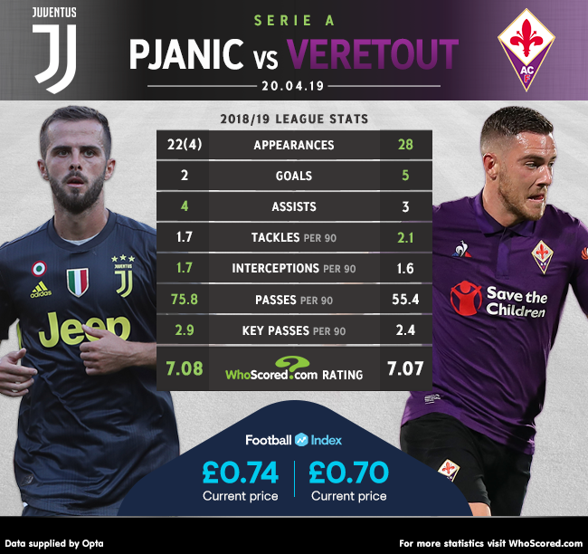 Whoscored Com On Twitter Head To Head Miralem Pjanic Vs Jordan Veretout Will Pjanic Help Juventus To Their Eighth Successive Title When They Host Fiorentina This Evening Full Match Preview Https T Co Gubbltrql4 Https T Co Hqjcuq0ndq