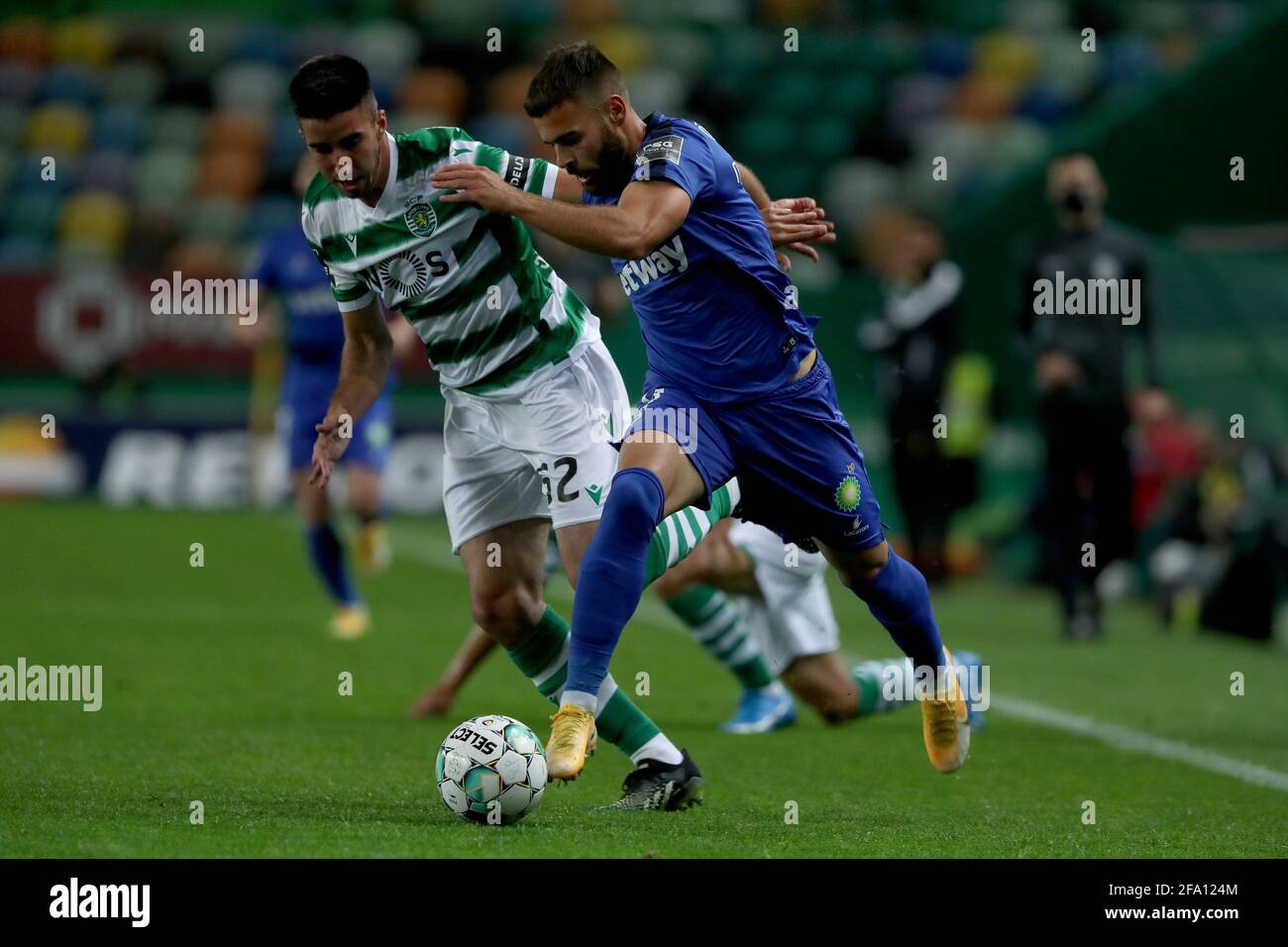 Lisbon Portugal 21st Apr 2021 Gona Alo Inacio Of Sporting Cp L Vies With Miguel Cardoso Of Belenenses Sad During The Portuguese League Football Match Between Sporting Cp And Belenenses Sad At